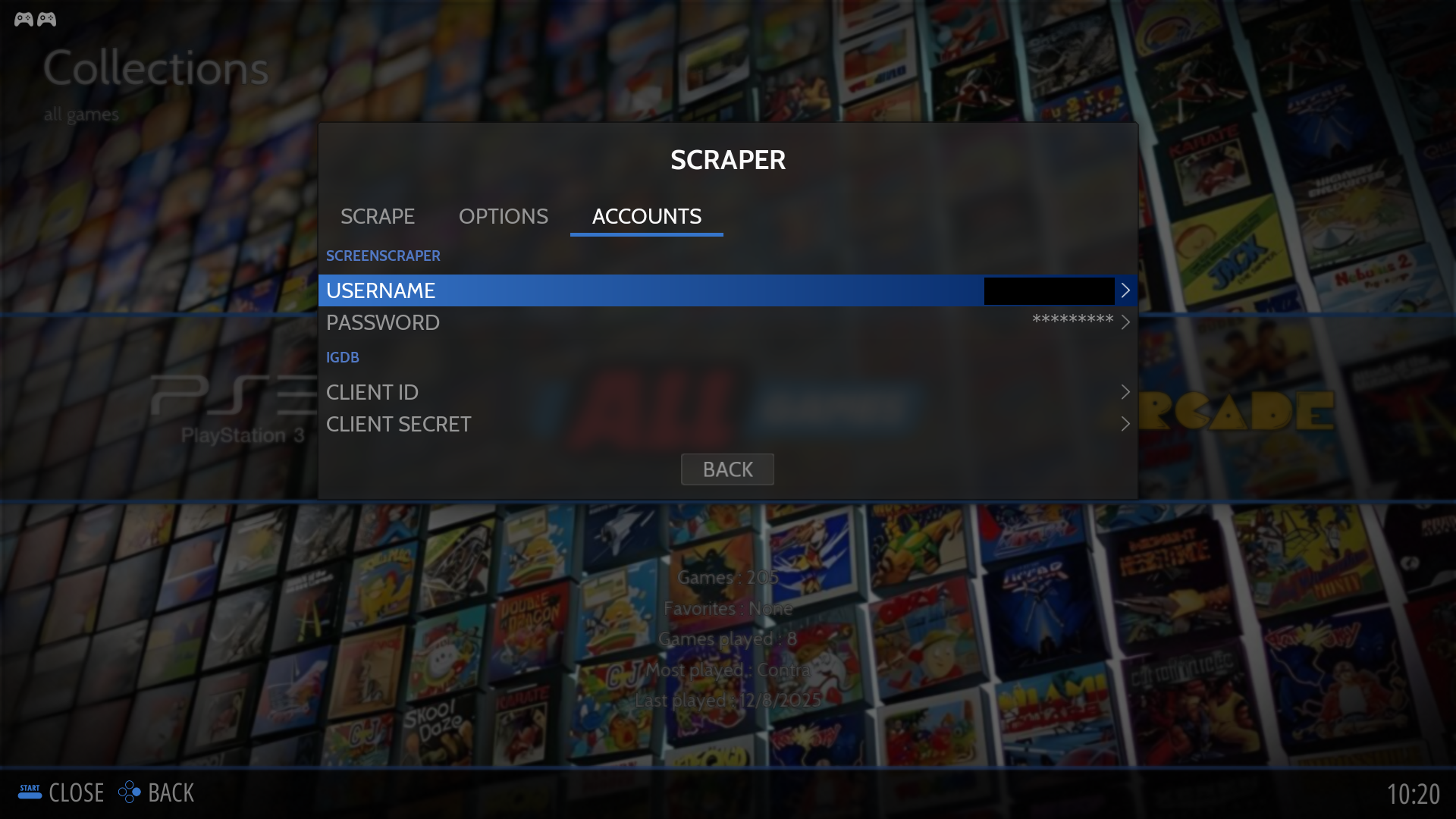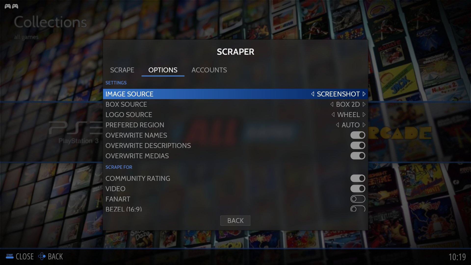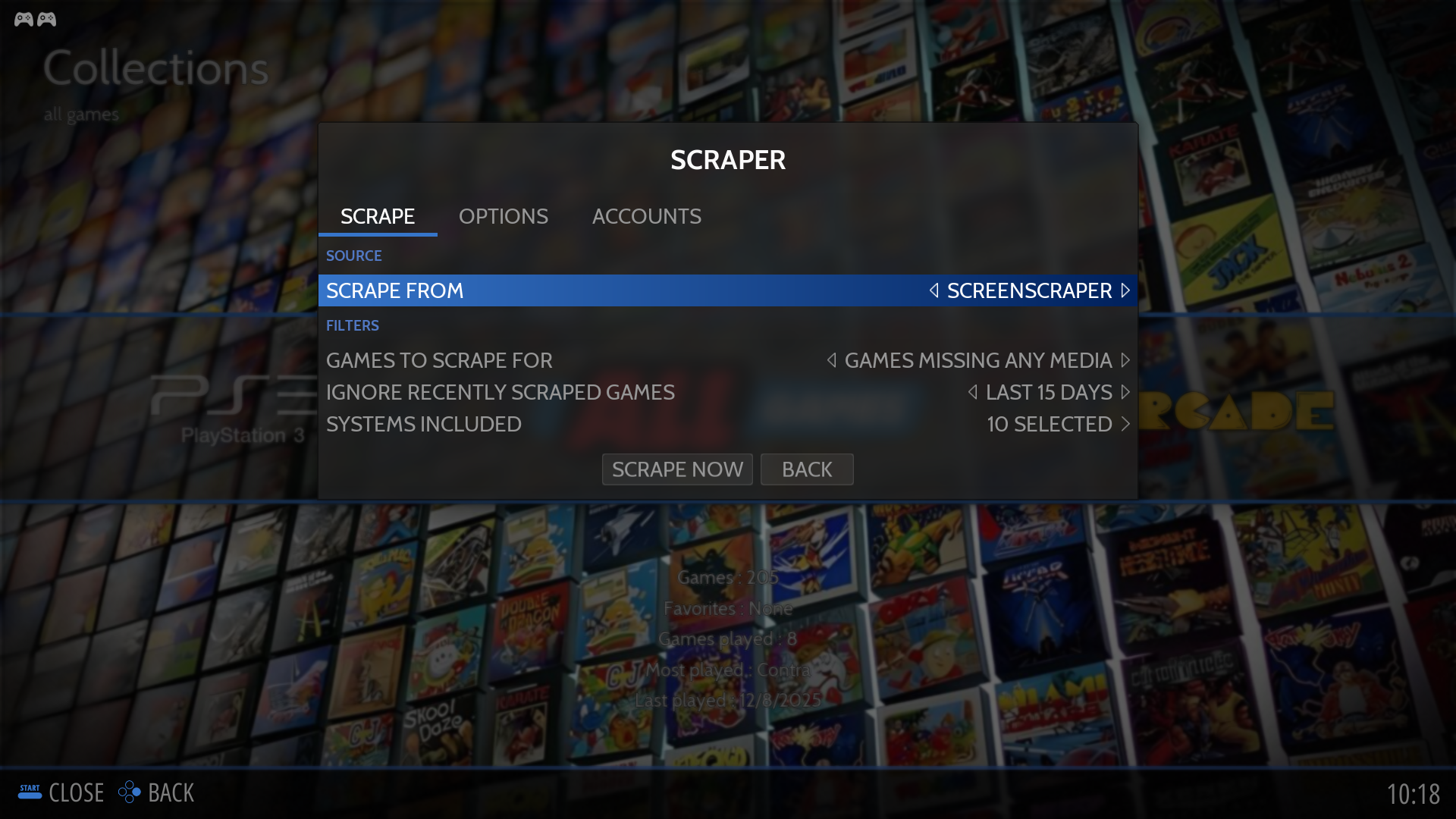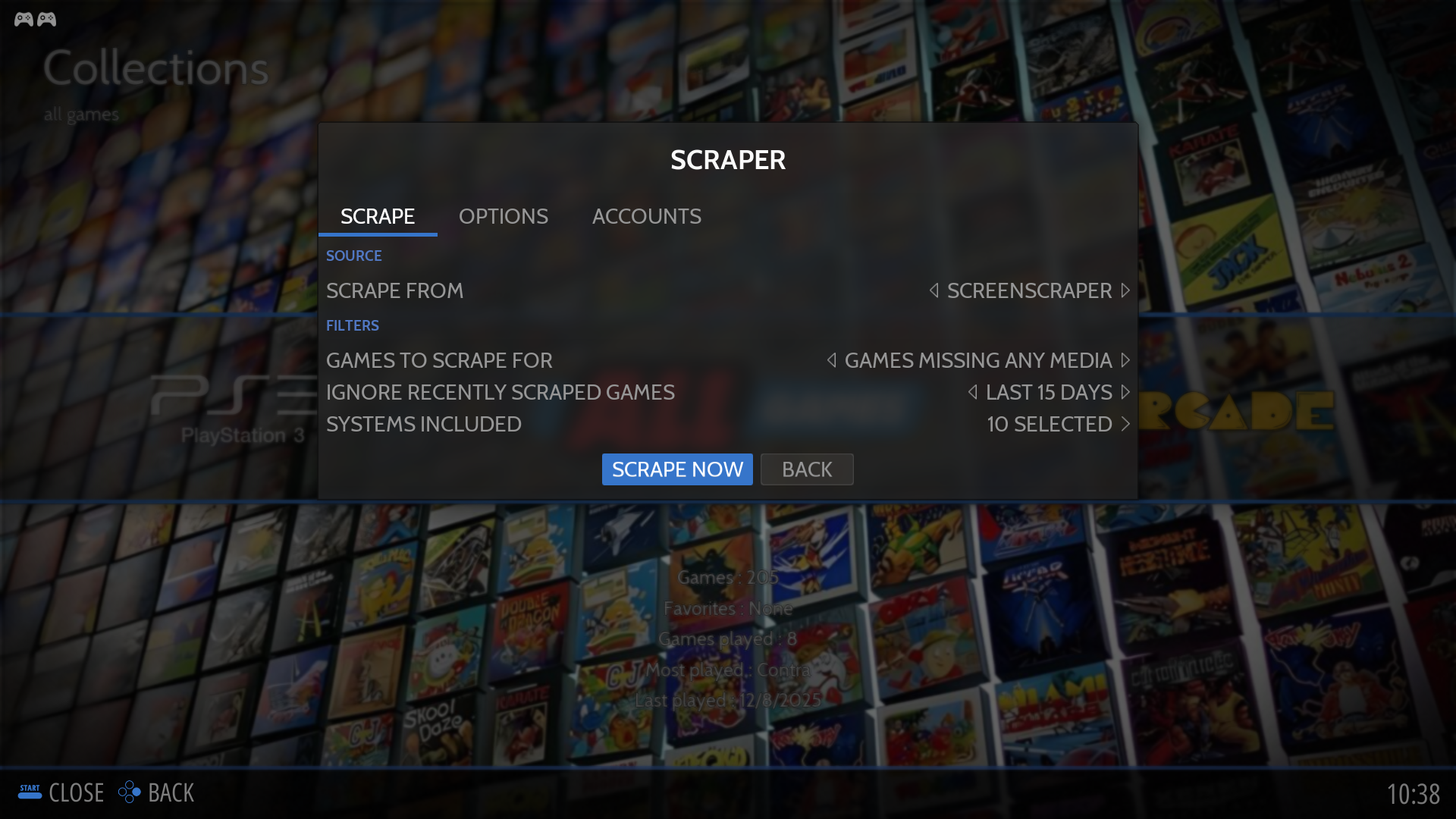 Scraper là tính năng quét ROMs và tải dữ liệu minh hoạ game từ internet.