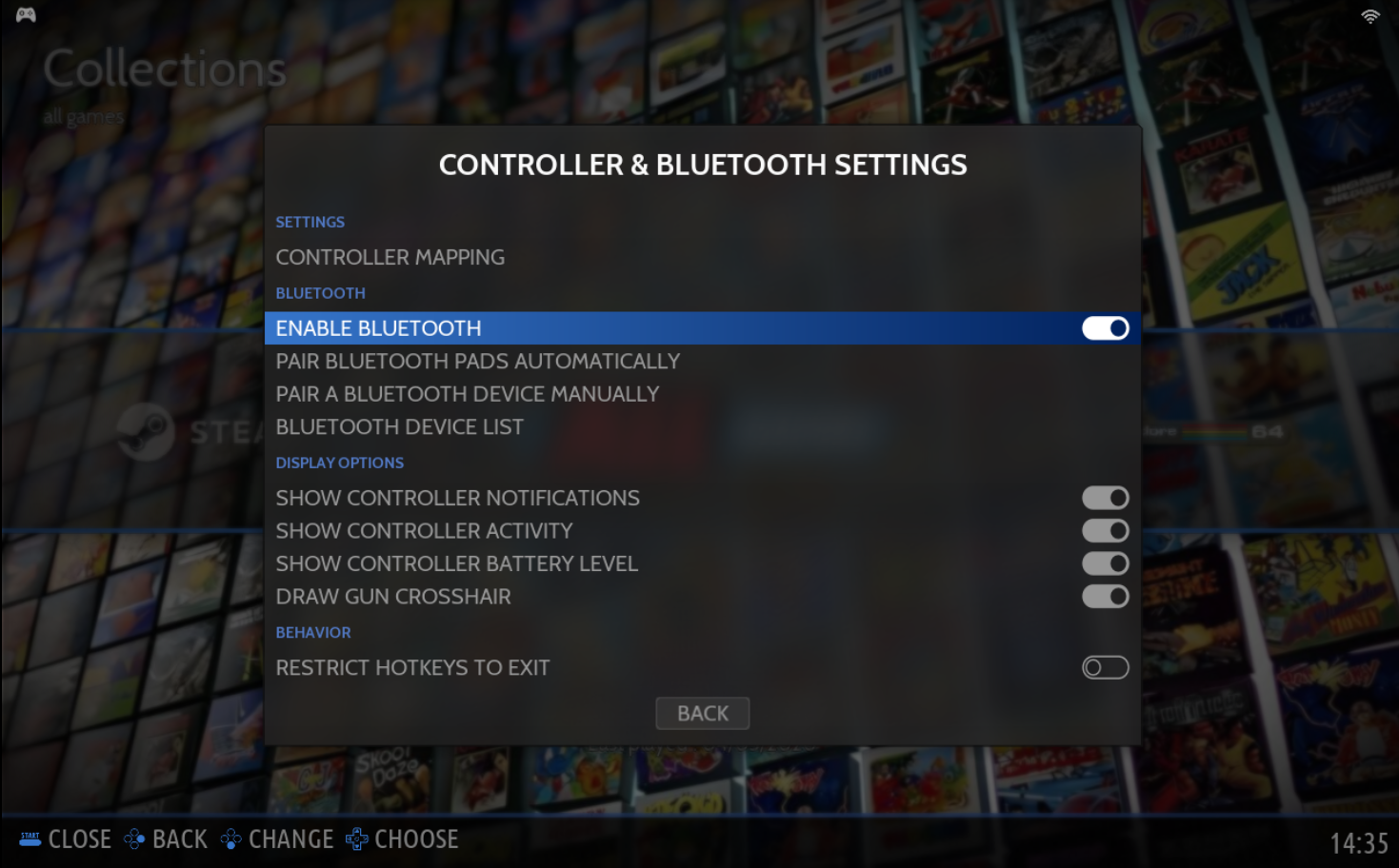 MAIN MENU → CONTROLLER & BLUETOOTH SETTING