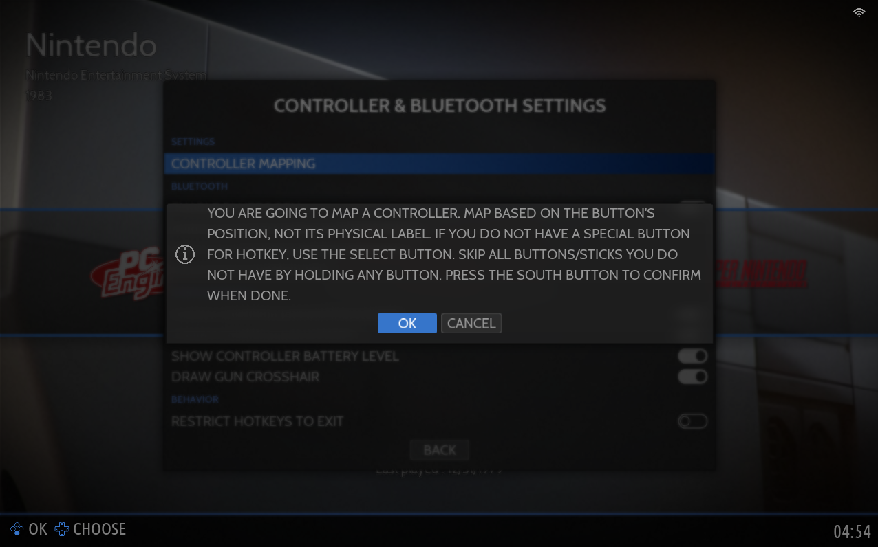 MAIN MENU → CONTROLLER & BLUETOOTH SETTING → CONTROLLER MAPPING